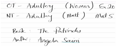 Cela nous donne un cadre pour essayer de comprendre la signification prophétique de l'adultère. J'ai longuement parlé de l'adultère, de ce que nous appelons l'adultère, de la façon dont cette rupture relationnelle est créée dans ce que j'appellerai l'ancien monde ou le monde antique. Je vais vous donner un nom. J'ai déjà donné ce nom auparavant. C'est un livre que j'ai recommandé. Le livre s'intitule « The Patriarchs » (Les Patriarches) et son autrice est une féministe radicale appelée Angela Saini. Je suis sûr que plusieurs personnes dans cette salle ont probablement déjà lu ce livre.