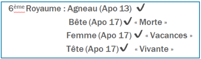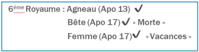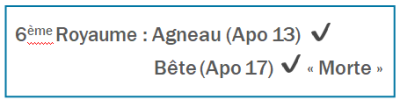 Membre : Donc, quand tu dis qu’il y a une Bête dans Apocalypse 17, dans le Sixième Royaume, est-ce pour nous permettre de continuer à avoir une vision panoramique ?