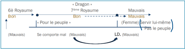 Si c'est le cas, je vais mettre une Femme après la Loi du Dimanche. Mais avant la Loi du Dimanche, où est la Femme ? Elle est encore en vacances. Elle n'est pas là, c'est pour ça que le Dragon peut être bon, parce que la Femme n'est pas là. Alors j'ai dit que le « mauvais » après la Loi du Dimanche, c'est un peu pire, un peu pire qu'auparavant. Et c'est ce changement qui attire la Femme car le Dragon - le Septième Royaume devient enfin juste un peu plus attrayant. C'est la même personne, la même chose, mais maintenant, il a l’air beaucoup plus attrayant.