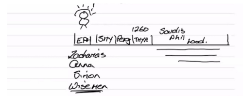 L'Église de Thyatire va entrer dans la période Sardes. Et ce mouvement a maintenant trouvé un endroit où il peut se réfugier. Ce mouvement passe par trois expériences différentes qui peuvent se superposer. Quelqu'un.e se souvient-il.elle où nous avons noté Philadelphie ? Quelle partie de l'histoire des Millérites ? Parce que l'histoire des Millérites commence en 1798. B. suggère 1844 et les années suivantes. J. dit 1840 à 1844. Pourquoi 1840 à 1844 ? Parce que c'est à cette époque que les messages des trois anges ont été prêchés, et Dieu rassemblait Son peuple.