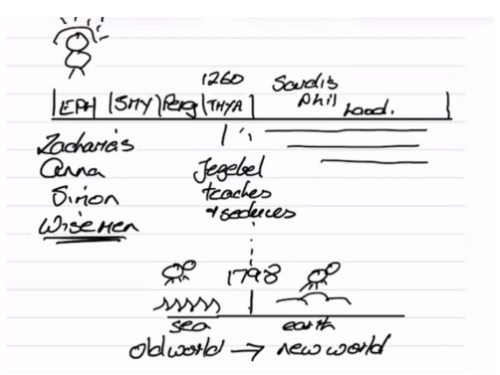 Si nous allons dans Apocalypse 2 et 3, combien d'Églises Dieu a-t-Il ? La réponse est sept Églises. Désolé, c'était une question piège. Vous êtes tombé.e.s dans ce piège. Dieu a une seule Église qui passe par sept phases différentes. Et ce que nous voyons ici, c'est la première phase de la dispensation chrétienne. Par conséquent, si nous avons une première phase d'une dispensation chrétienne, que devons-nous avoir d'autre ? La dernière phase de la dispensation précédente. Et quand j'ai utilisé le mot « dispensation », je me suis rendue compte que je l'utilisais probablement différemment de ce que nous avons fait hier. Parce que la dispensation mosaïque couvre une longue période de temps.